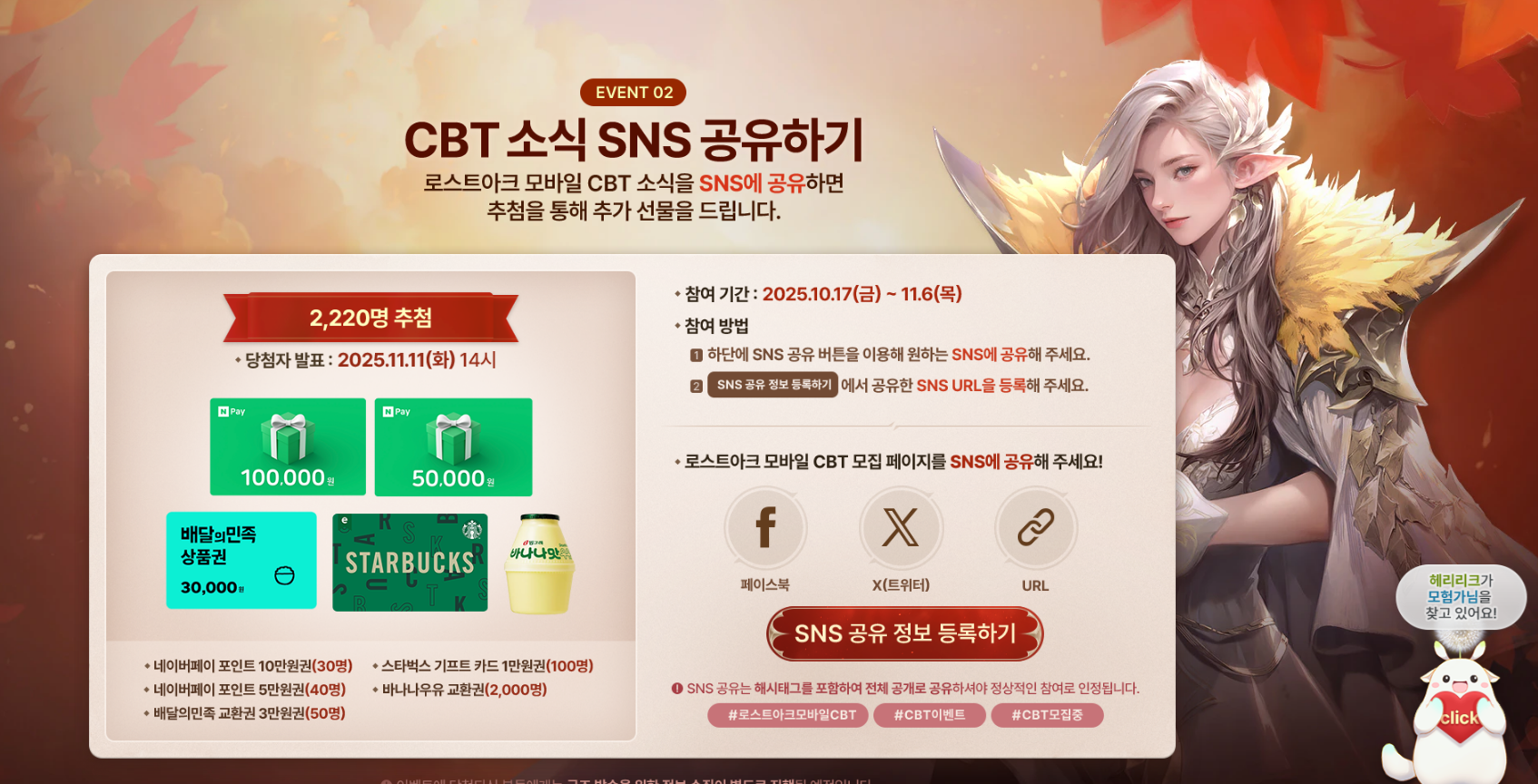 CBT 모집 기념, '헤리리크'와 함께하는 풍성한 이벤트
