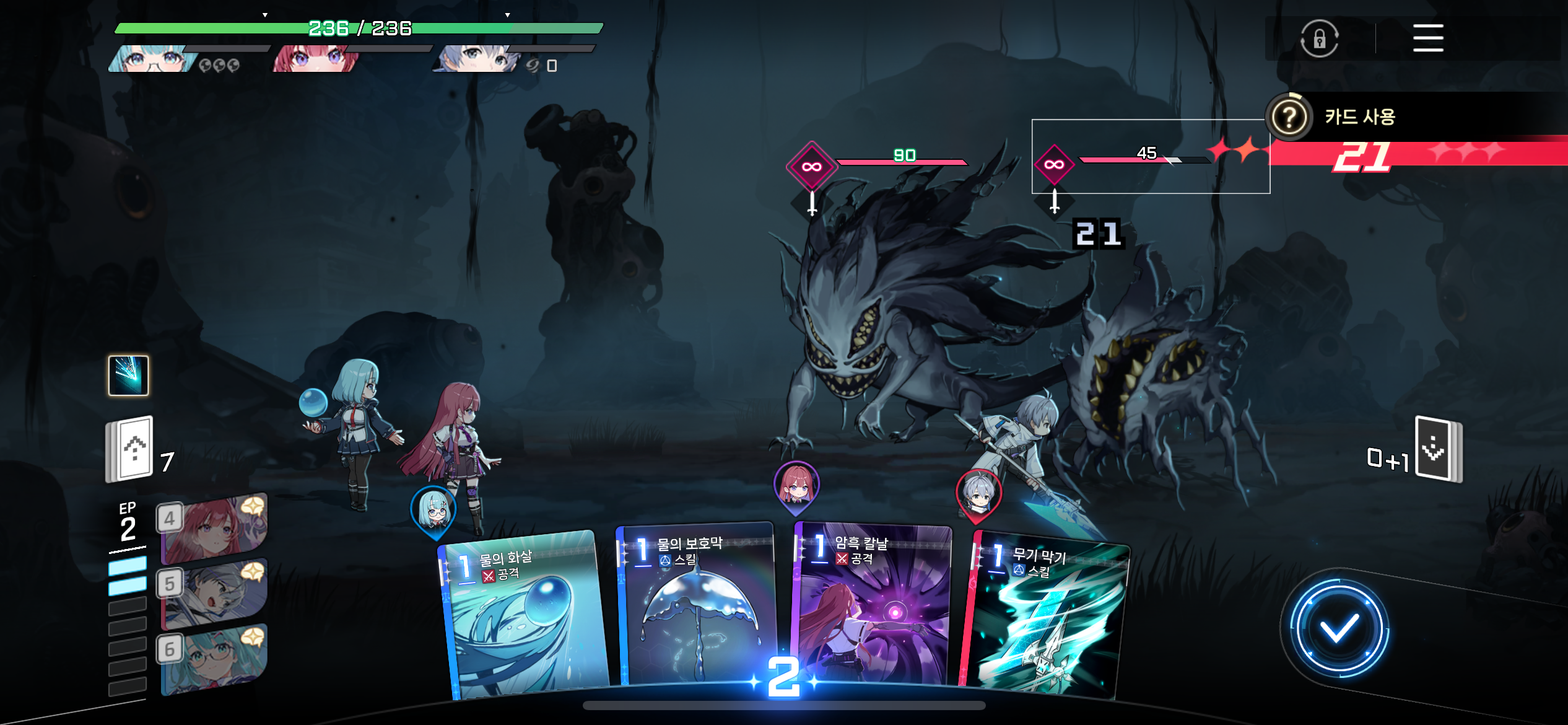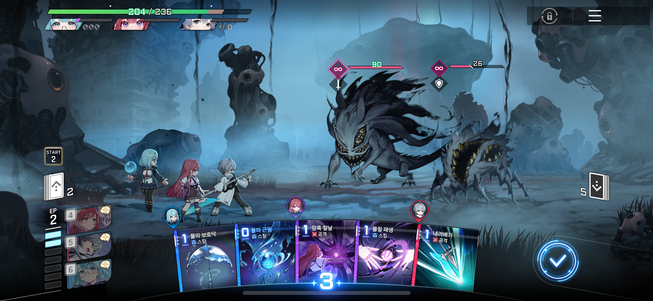 게임 난이도는 높지 않지만, 카드 선택과 캐릭터 조합에 따라 전투 결과가 달라지는 만큼 전략적 사고가 필요하죠.