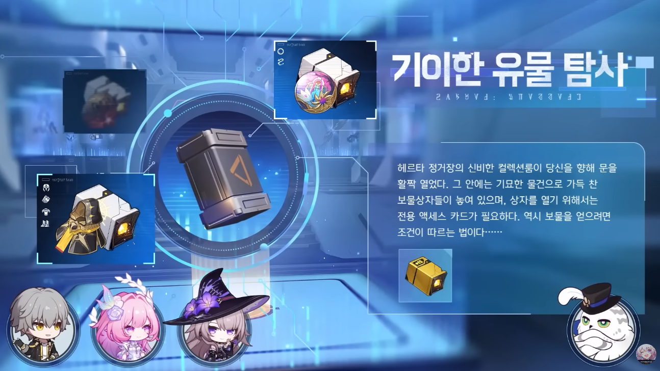 기이한 유물 탐사 헤르타 정거장의 신비한 컬렉션룸에서 보물 상자를 탐색하는 이벤트입니다.