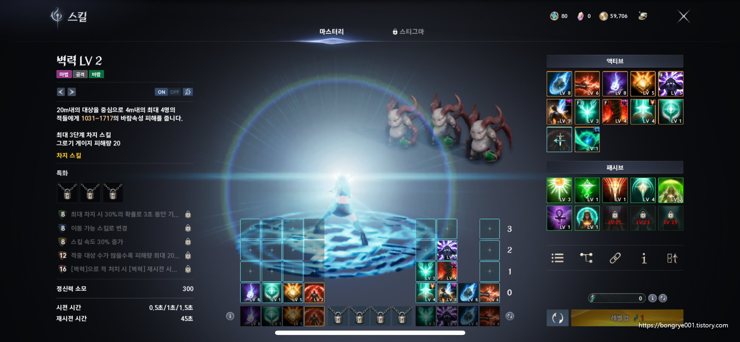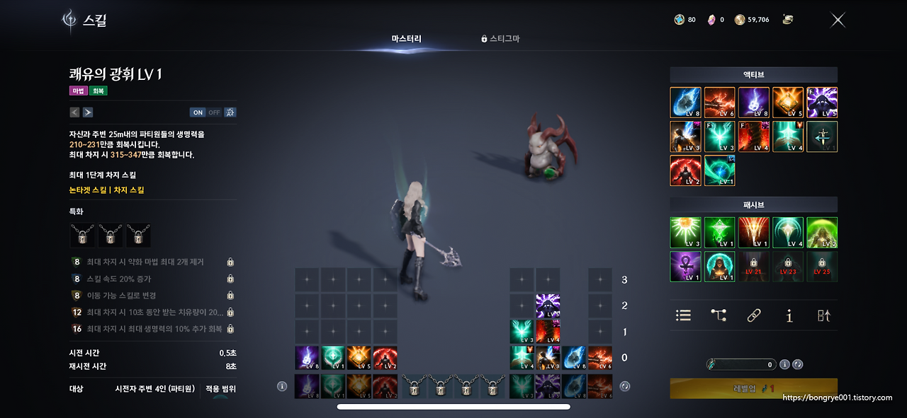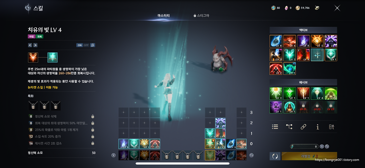 치유성의 중심은 역시 힐 스킬 구성입니다.