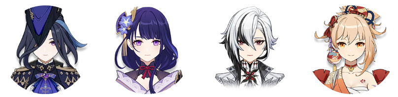 메인 딜러: 클로린드, 라이덴, 아를레키노, 요이미야 등.