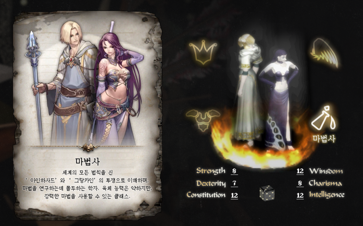 - 마법사: 강력한 마법 공격과 보조 능력을 겸비한 클래스