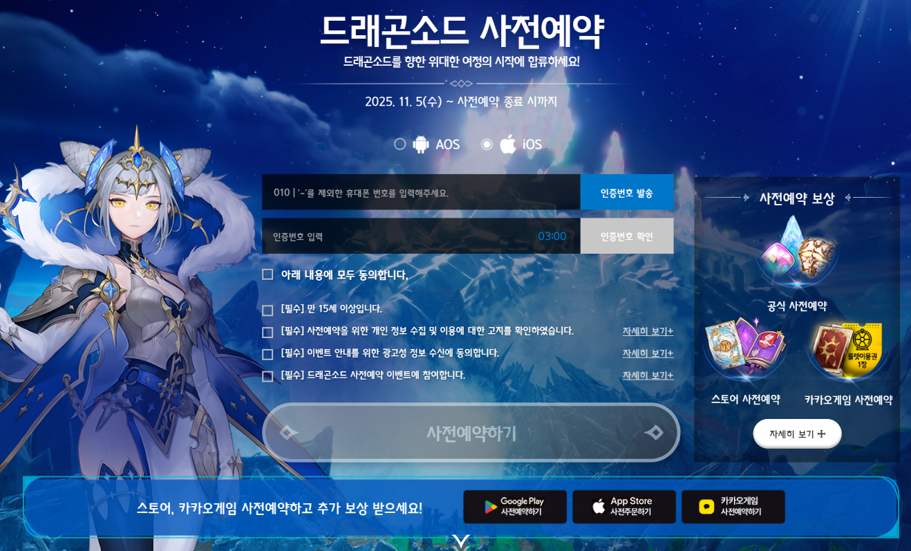공식 브랜드 홈페이지를 통해 등록한 모든 회원에게는 캐릭터 소환권인 영롱한 여신석 등 게임 초반 성장에 큰 도움을 주는 고급 보상이 지급됩니다.