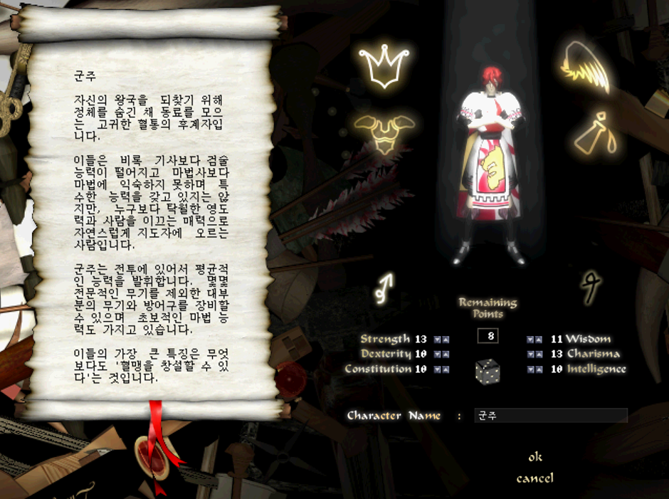 대규모 혈맹을 운영하거나 군주 전용 버프의 효율을 극대화하고 싶을 때 선택합니다. 카리스마(CHA) 수치에 따라 수용 가능한 혈맹원 수가 결정되므로, 리더 역할을 수행하려는 유저에게 적합합니다. 다만, 공격력이 낮아 사냥 효율은 떨어지므로 별도의 메인 딜러 캐릭터를 보유한 상태에서 부캐릭터로 육성하는 경우가 많습니다.