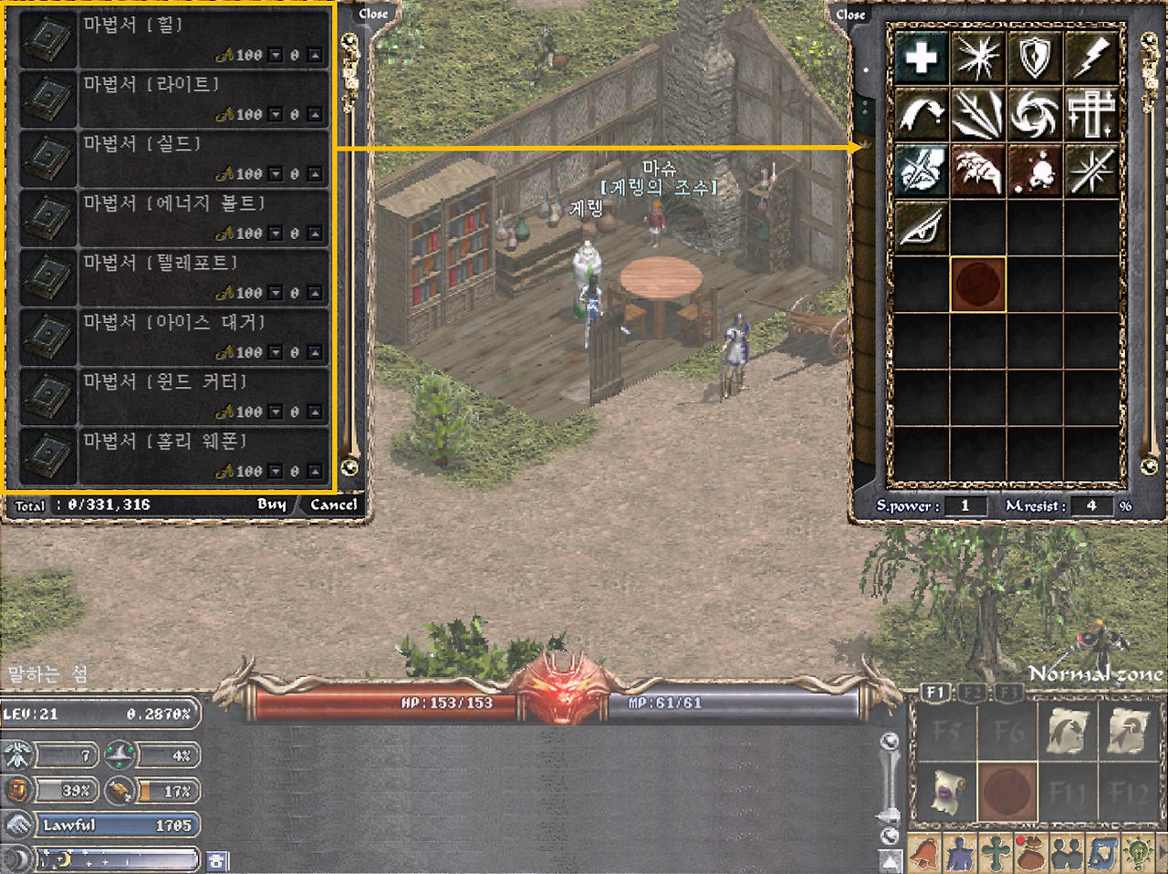 일반 마법: 10레벨에 1단계, 20레벨에 2단계 마법을 습득할 수 있습니다. 힐, 실드, 텔레포트와 같은 기초 생존 마법은 아데나를 아끼지 말고 빠르게 배워두어야 사냥 유지력이 좋아집니다.