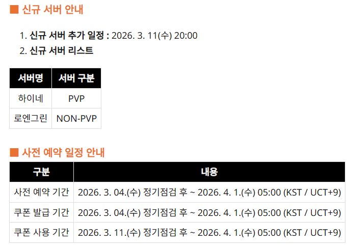 | 리니지M ContiNew 업데이트 신서버 켄트 오렌 캐릭터 생성 TJ 쿠폰 총정리 (0) | 2026.03.04 |