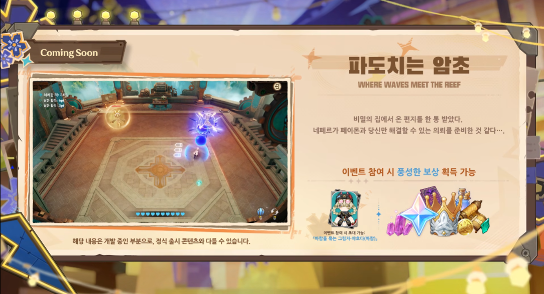 한정 아이템: 이번 버전에서만 획득 가능한 기념 장식물이나 전용 무기 등 수집 가치가 높은 아이템들이 예고되어 여행자들의 수집욕을 자극하고 있습니다.